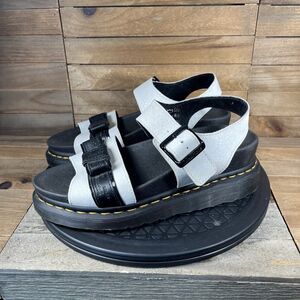 Dr Martens Womens Size 8 Slip On Romi Crackle White Black Platform Sandals