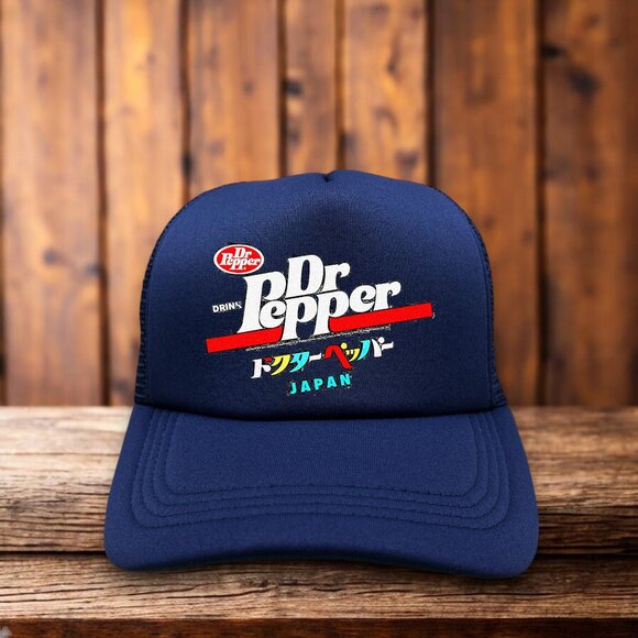 Dr. Pepper Mens Trucker Hat Blue Snapback Japan Retro 90s Soda Pop Baseball Cap