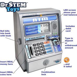Dr. STEM Toys Talking ATM Machine Savings Piggy Bank for Kids, Silver
