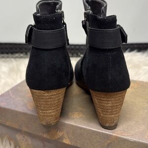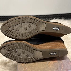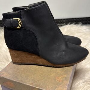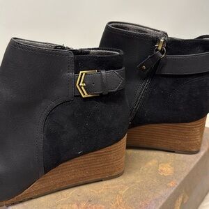 Leather like upper, suede like back, wedge heel