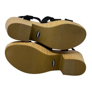 Dr. Scholls Black Blossom Strappy Platform Sandals US 10M Faux Wood Block Heel