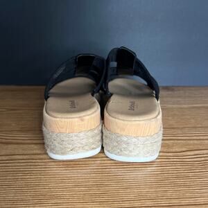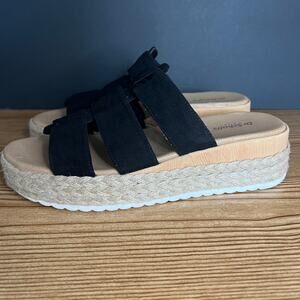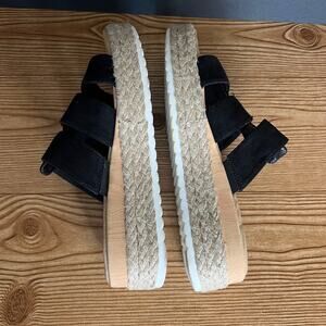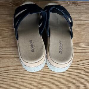 Stylish Dr. Scholl's sandals with black straps. Comfortable wedge design.