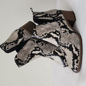 Dr. Scholl's Black White Snakeskin Reptile Python Faux Leather Ankle Booties 6M