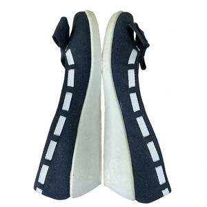 Dr. Scholl's Canvas Bow Tie Glittered Low Wedge Pump Slip On Shoes