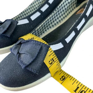 Dr. Scholl's Canvas Bow Tie Low Wedge Pump Slip On Shoes Size 10M Blue Glitters