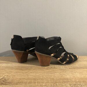 Dr. Scholl's Concept Heels Womens Sz 7.5M Black Gladiator Fabric Open Toe Block