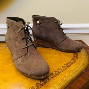 Dr. Scholl's Conquer Military Durable Utilitarian Chic Vegan Ankle Wedge Bootie
