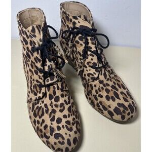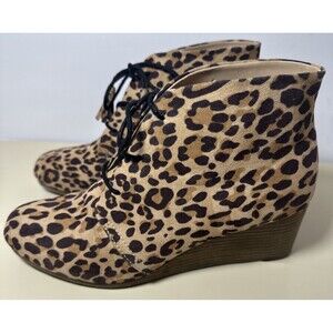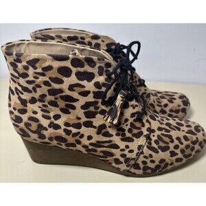 Dr. Scholl's Dakota Ankle Lace Up Leopard Wedge Booties Brown Sz 10 M