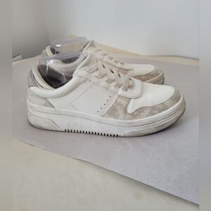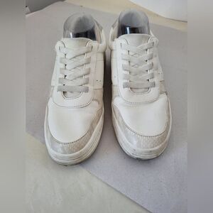 Perfect casual Sneaker for any occasion. White with reptile print panels. stretchy slip on elastic closures with an attached sock for ankle comfort. Good condition, there are signs of wear, see all photos. Women's US size 9.5