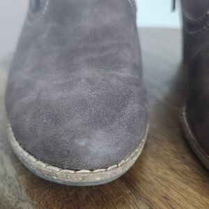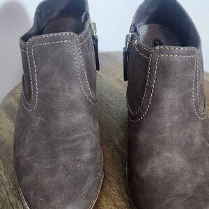 Dr. Scholl's gray booties with stacked heels, side zippers, and man-made materials. Same-day shipping for orders received on weekdays by noon CST. Make me an offer!