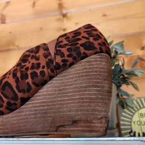 Dr. Scholl's Harlow Brown Leopard Wedge Heel Platform Ankle Boot Booties Sz 10 M