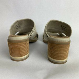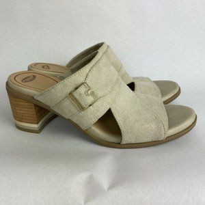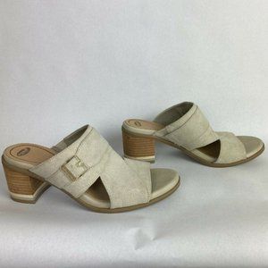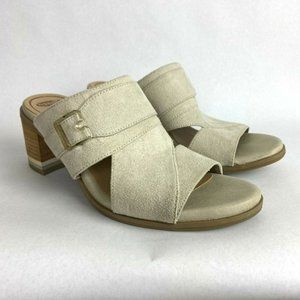 Dr. Scholls Heeled Sandals 8 Beige Block Heel Open Toe Slip On Faux Suede Women's