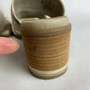 Dr. Scholls Heeled Sandals 8 Beige Block Heel Open Toe Slip On Faux Suede