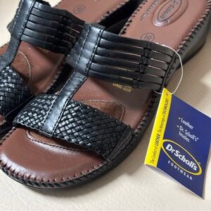 Dr Scholls Leather Betty Double Air Pillo Slip On Sandal Black Sz 8.5 in new condition