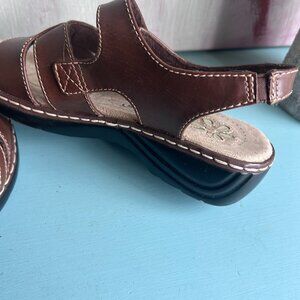 Dr. Scholl's Leather Embroidered Sandal Size 6 Low Heel Comfort Arch Support
