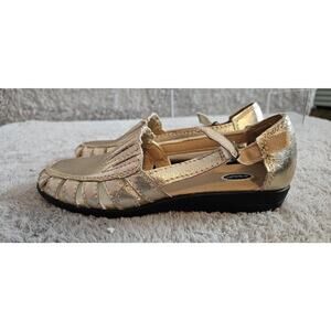 Dr Scholls Leather Woven Sandals Huaraches Loafers Gold Metallic 7.5 Adjustable