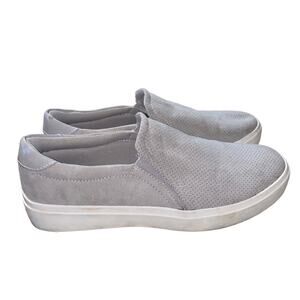 Dr. Scholl's Madison Slip On Sporty Sneaker Shoes memory foam cool fit comfort grey 9. Slip-on perforated fabric faux leather upper with elastic side panels, round toe, comfort cushioned insole, vulcanized rubber sole, round toe. There are some signs of wear but the shoes have plenty of life left.