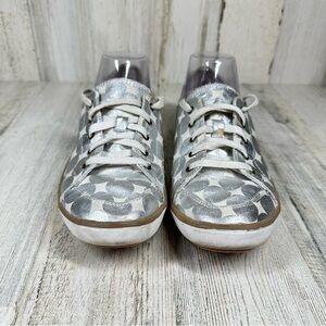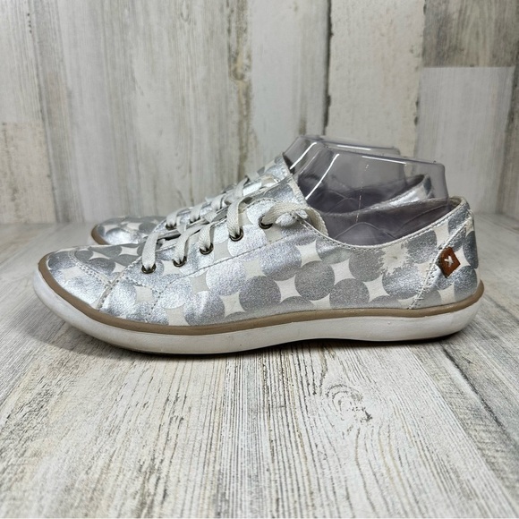 Dr Scholl's Maylee Lace Up Sneakers Geometric Silver Metallic Polka-Dot #65