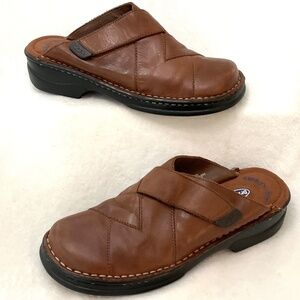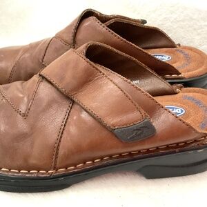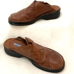 DR SCHOLL’S BROWN LEATHER SLIP ON COMFORT CLOG SHOE