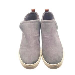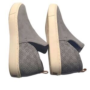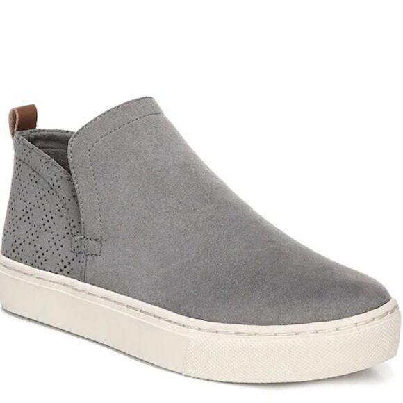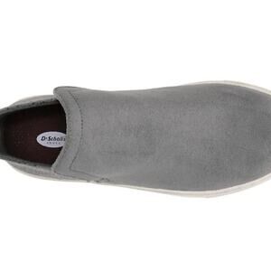 Dr. Scholl’s sneakers, platform slip-on shoes, gray faux suede sneakers, No Doubt sneaker, casual slip-on shoes, women’s platform sneakers, comfortable walking shoes, sporty fashion sneakers, cushioned casual shoes, trendy everyday sneakers, lightweight slip-on shoes, stylish casual wear, travel-friendly sneakers, comfortable work shoes, perforated heel sneakers, effortless streetwear fashion.