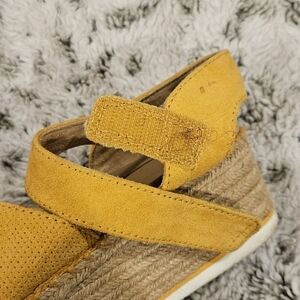 Dr. Scholls Open Toe Mustard Yellow 2.25" Wedge Espadrilles Hook Loop Close SZ 8