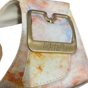 Dr. Scholl’s Originalist 2 Slide Sandals Metal Buckle Watercolor Blue Clay Color Way Sustainable Comfort and Style. Beachy Spring Summer Retro Boho Costal Grandma Granola Girl Boating Lake Cabin