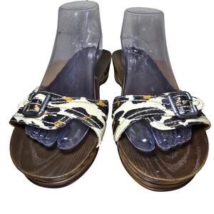 Dr Scholls Sandals Womens 10 Wooden Slide Flats Buckle Comfort Beige Slip On Like new