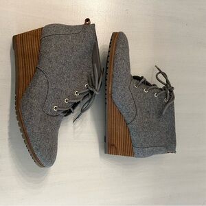 Dr. Scholl’s Shoes Women’s Lace Up Round Toe Gray Wool Wedge Booties Sz 11M GUC