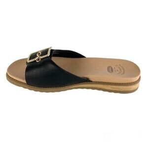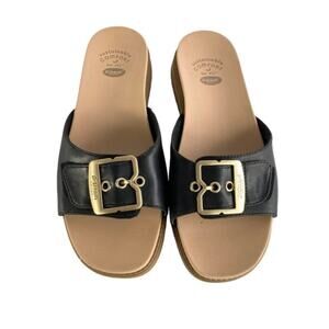 NWOB Dr. Scholl's Women's Iconic Buckle Slide Sandals in black.