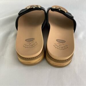 Dr. Scholl's Slide Sandals Women 8W Black Get it Movin Iconic Buckle Flats Beach