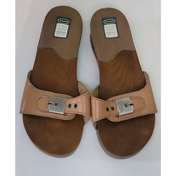 Dr Scholl's Tan Exercise Sandals Rubber Buckle Soft Sole Sz 9