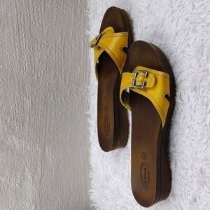 Dr. Scholl's Vintage Yellow Round Toe Buckled Strap Contoured Footbed Mules