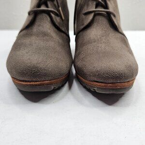 Dr. Scholl's Wedge Boots Sz 6 Faux Suede Minimalist Comfort Lace Up Ankle Bootie (B734)