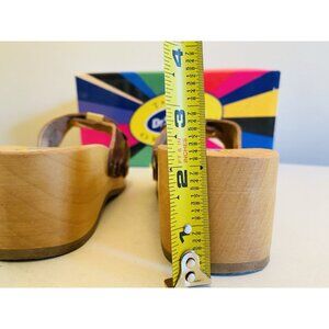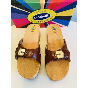 Dr Scholls Women Size 6 M Wood Exercise Clog Sandal Brown Leather Slide Shoe New