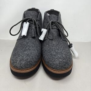 The Dr. Scholl's Women's Ankle Wedge Booties in size 8M are stylish and versatile, perfect for both casual and business occasions. These lace-up booties feature a round toe shape, high wedge heel, and a cozy wool blend upper material. The gray color and tassles add a touch of bohemian flair, while the rubber outsole ensures durability. Made for the winter, fall, and spring seasons, these ankle booties are a fashionable choice for any woman's wardrobe.