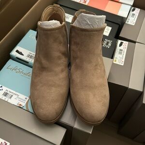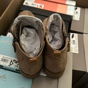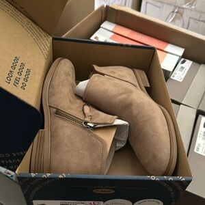 STYLE: Faux suede short zipper bootie with 1-inch block heel