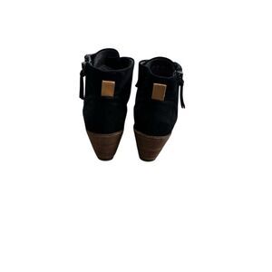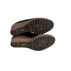 Discover the perfect blend of style and comfort with Dr. Scholl's Women's Black Bootie. Crafted from soft faux suede, these ankle booties feature a chic wedge heel and a convenient side zipper for easy wear. The round toe design ensures all-day comfort, making them ideal for both casual outings and more polished occasions. Whether you're heading to brunch or a night out, these versatile booties have you covered. Please be aware that the item is in good condition but may have some flaws. There’s a few marks on the block heels from storage. Please see photos for more details.