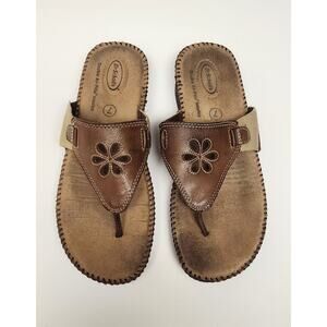 Dr. Scholls Women's Brown Leather Floral Thong Flip Flop Sandal Shoes Size US 7
