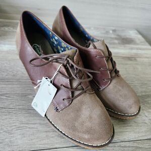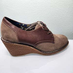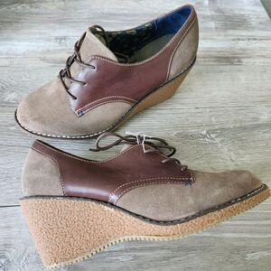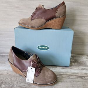 Dr. Scholl's Womens Cate Wedge Oxfords Academia Taupe Leather Lace Up Sz 7.5 NEW