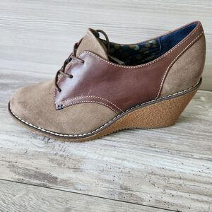 Dr. Scholl's Cate Wedge Oxfords Taupe Leather Lace Up Women NEW