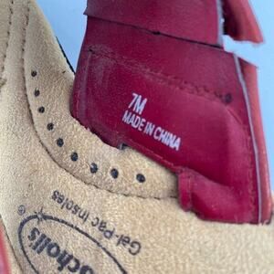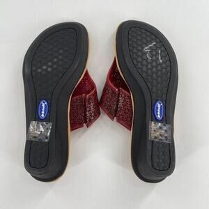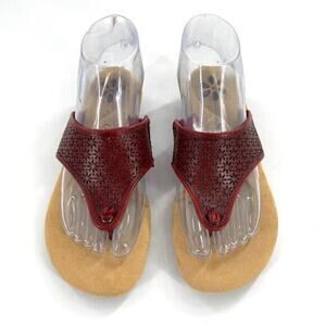 Dr Scholls Womens Red Thong Sandals Size 7 Laser Cut Comfort Kitten Heel