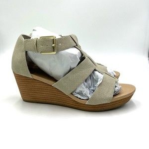 Dr Scholls Womens Size 7.5 Barton Light Gray Cream Faux Snakeskin Wedges Shoes