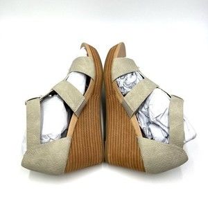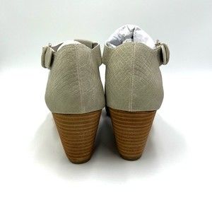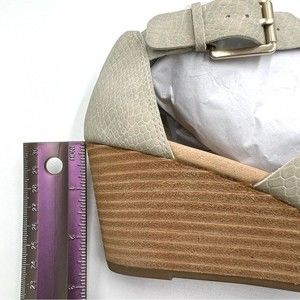 Brand new (no box) Dr. Scholl's women's Barton gray / cream (oatmeal greige type color) faux vegan leather snakeskin embossed wedge sandal / heels.
