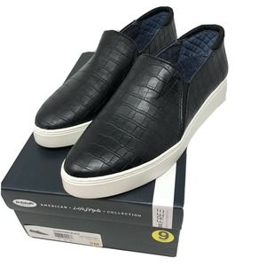 Dr Scholl's Womens sz 9M Black Croc Embossed Slip-On DownTown Sneakers NWB