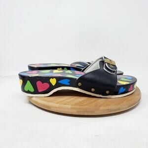 Dr Scholls Wooden Slide Sandals Womens 7 Original Clog Black Hearts Custom Paint