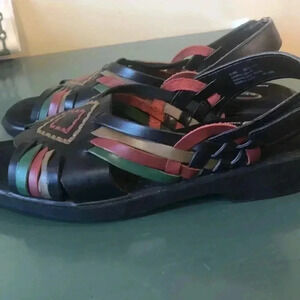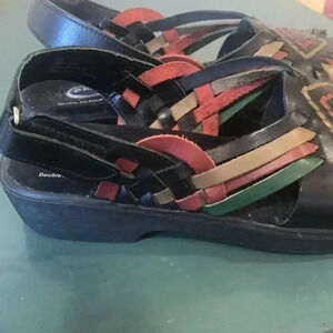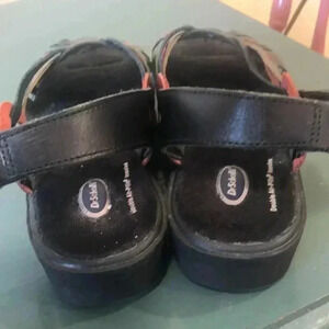 Dre. Scholl’s Double Air-Pillo insoles woven leather sandals with Velcro strap. Size 8-1/2.