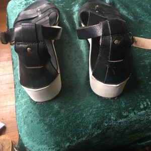 Black sandals with ankle strap. White sole, approximately 1.5". Barely worn! Size 7.