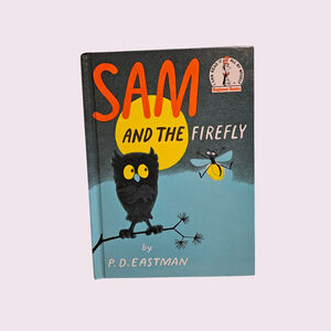 Pre-owned copy of Sam and the Firefly, a Beginner Book by P. D. Eastman. The book measures is in good condition with minor signs of wear. The cover is light blue with illustrations of Sam the owl and a firefly. The pages are intact. The text is clear and legible. The book's ISBN is 0-394-80006-0. Publisher is Random House.