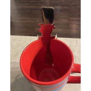Dr. Seuss Cat In The Hat Mug 12 Oz Red & Blue Stripes w/ Metal Cat In The Hat Stirrer