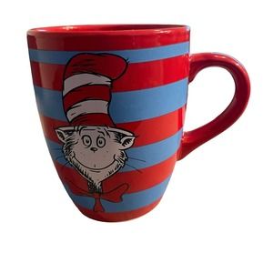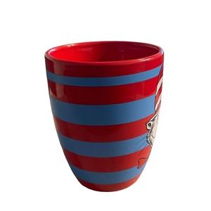 Dr. Seuss Cat In The Hat Mug 12oz Red/Blue Stripes &Metal Cat In The Hat Stirrer